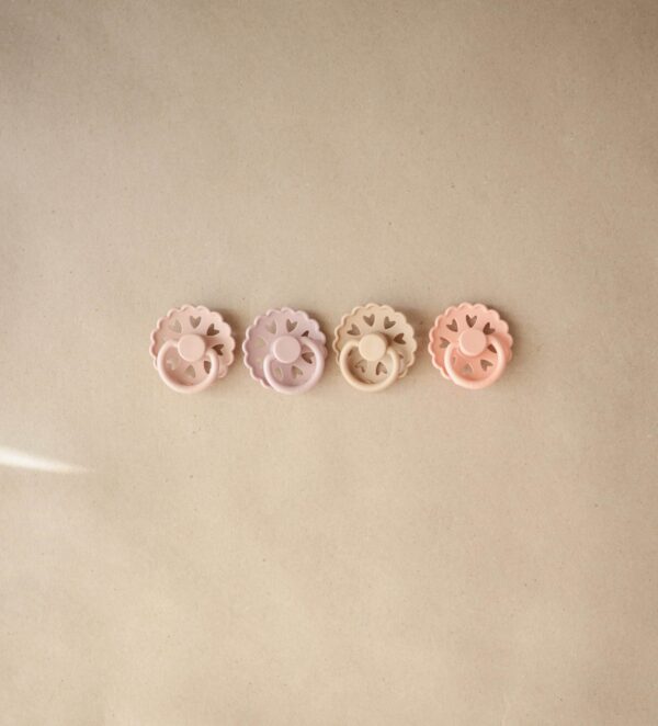 Kolekcia cumlíkov FRIGG Fairytale je inšpirovaná umeleckou tvorbou dánskeho autora H.C. Andersena. Vrúbkované okraje a malé srdiečka vo vnútri štítu napodobňujú jeden z jeho papierových výstrižkov. Každá farba cumlíka je pomenovaná podľa jeho známych rozprávok, ktoré dodávajú cumlíkom nádych fantázie. Tento mimoriadne krásny cumlík, s moderným dizajnom a elegantnými detailmi, upúta pozornosť každej štýlovej mamičky.